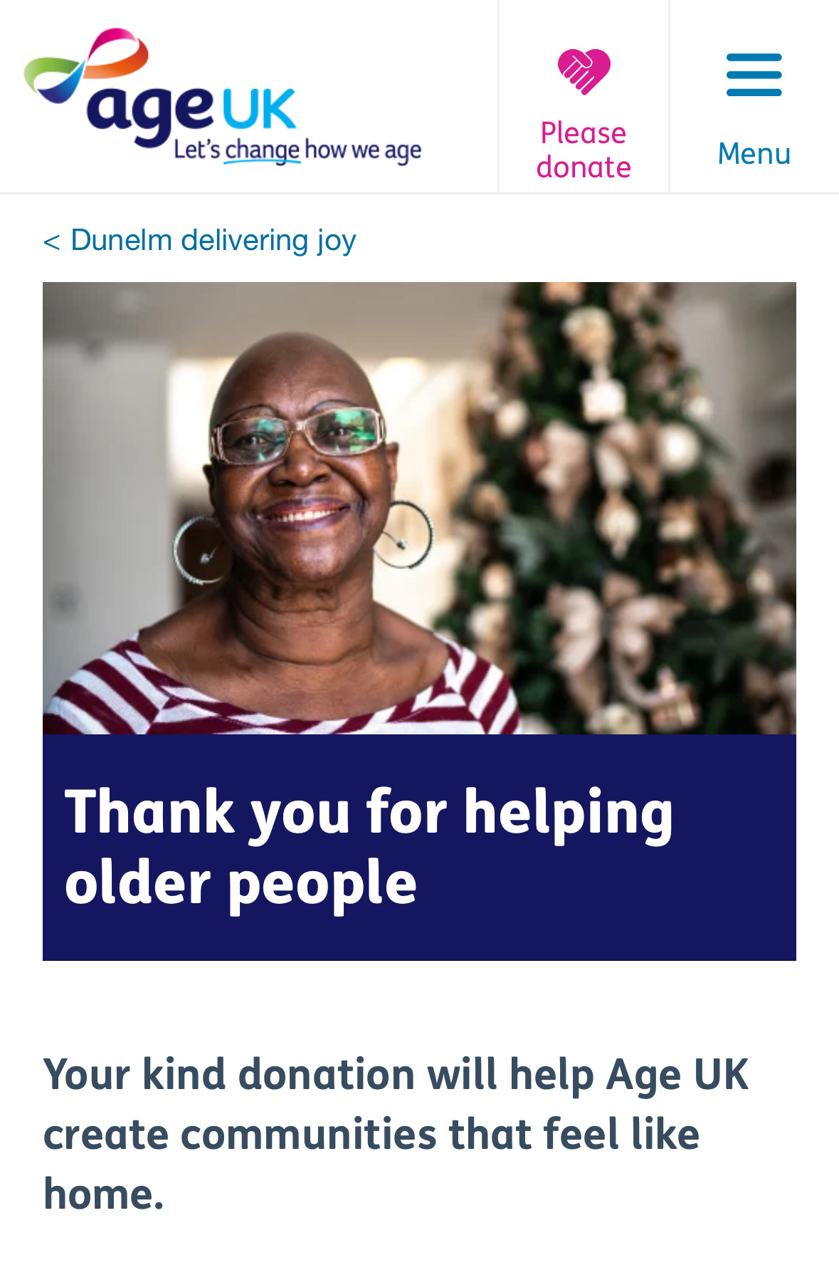 This year, Dunelm’s charity partner is Age UK.