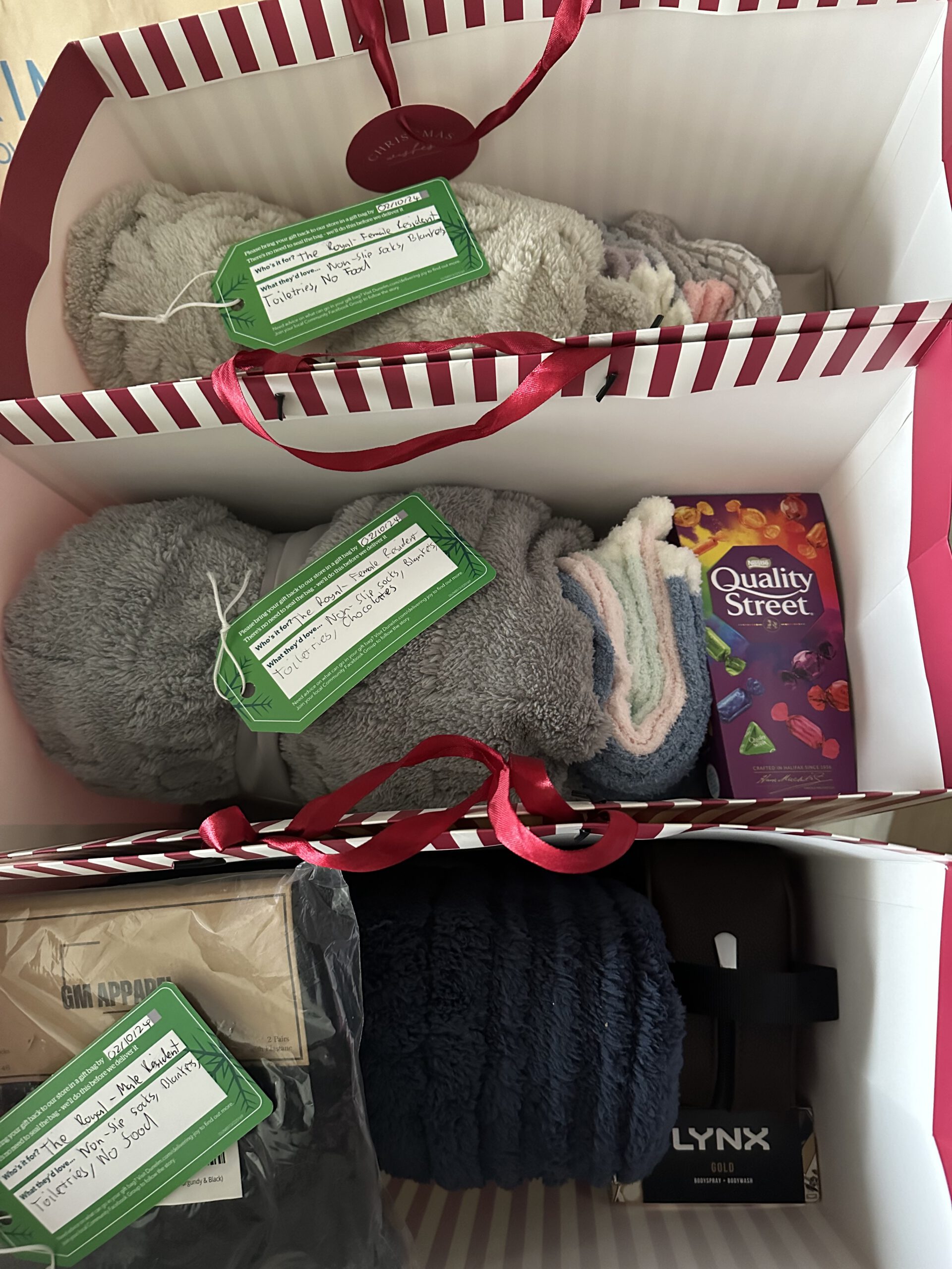 Some members of the team visited their local store and picked up a tag or two from the Christmas tree. They then selected some gifts and essential items that had been wished for by the recipients.
