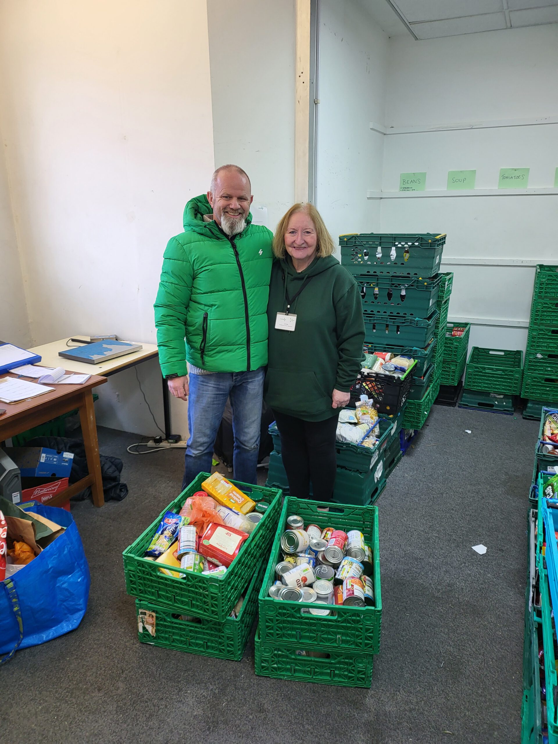 Here is Frank Barber, from the Trussell Trust Team, with Linda Ward, volunteer who were on hand to receive our donation.